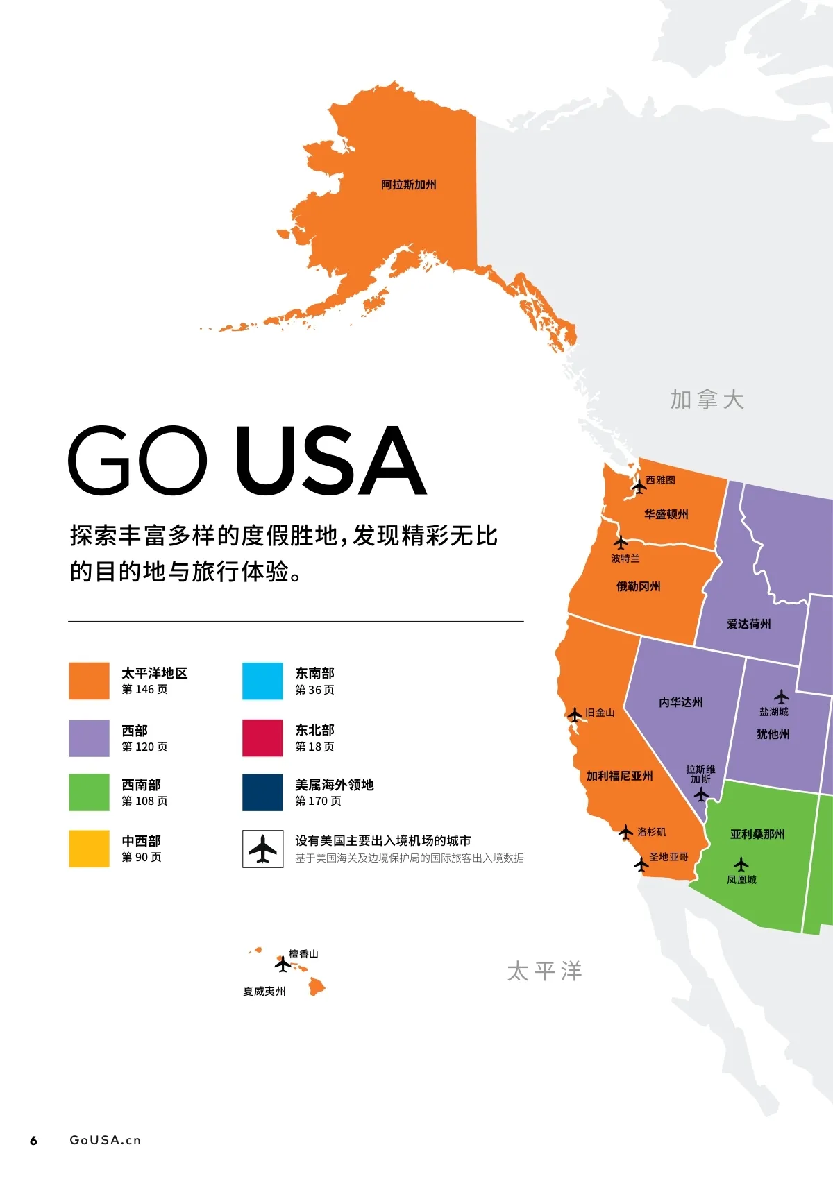TRAVEL THROUGH THE PACIFIC 加州 大 地 多度假地, 州 州 州 州 他州 加利福尼亚州 洛杉矶 斯 斯 于美的旅客入 国 圣地亚哥 亚利州 6 GoUSA.cn